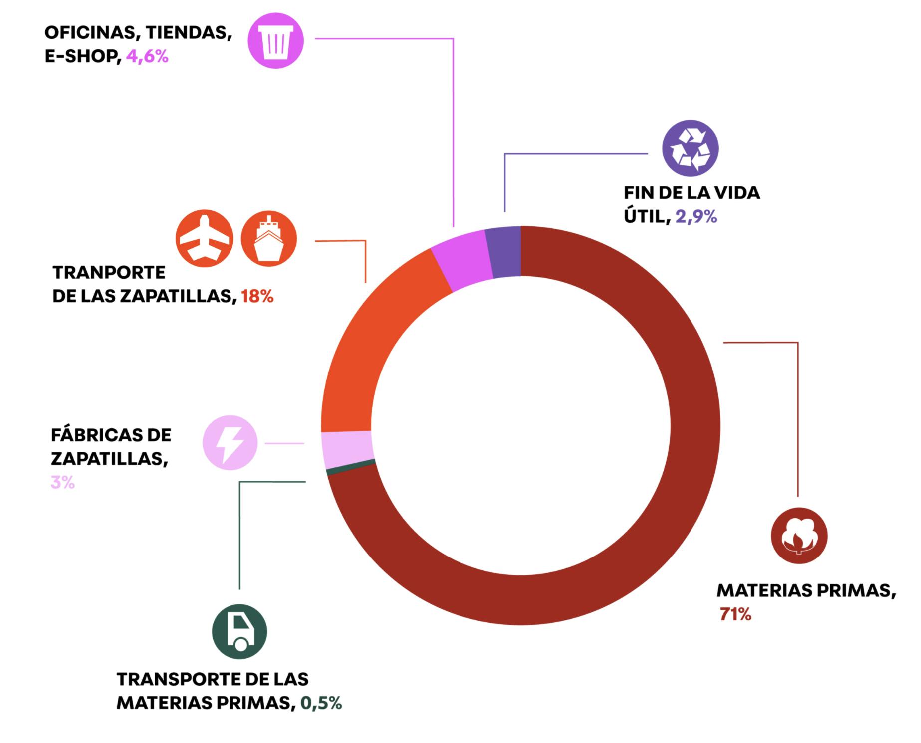 La electricidad, los residuos y los combustibles de nuestras fábricas de zapatillas.