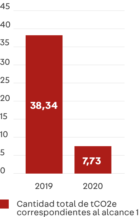 El alcance 1 son las "actividades directas" de la empresa, el cual presentaba unos resultados cercanos a cero cuando calculamos nuestras emisiones por primera vez en 2019.