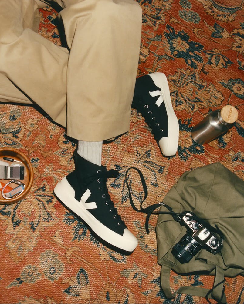 NOVA High Top lancée en janvier 2020, toile et doublure entièrement réalisées en coton biologique et agroécologique, dans le respect des principes du commerce équitable.