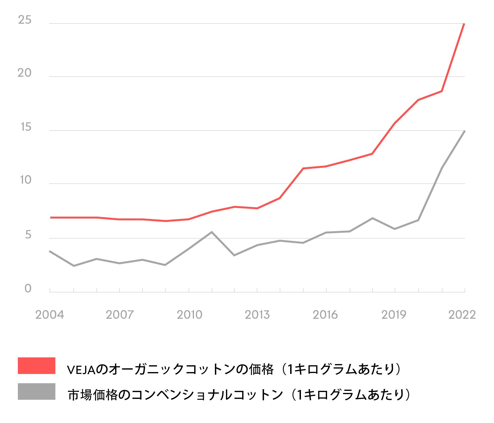 オーガニックコットンの価格は、生産者と事前に決定されます。VEJAは2年間の契約を結び、事前に決められた価格で彼らのオーガニックコットンを購入することを保証します。これにより、生産者は次の2〜3回の収穫に対する予測が可能となります。生産者が綿の種を植えたときその種から生産される綿1キロをいくらでで売ることができるのか分からず、先への見通しが立たないという世界がかかえる農業の大きな問題を回避できます。
